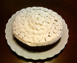 一応ガトーショコラとは違うんですが、生クリームがないと見た目ガトーショコラで去年と同じになってしまうのでクリームをのっけてみました。もういっぱいいっぱいだったのでやや雑です。まぁいいじゃないか。味は美味しかったですよ(*´д`*)生クリームナシの失敗作も味は美味しかったのですがやっぱしっとり感が違いました。焼きあがりも全然違ったし…。今度からこの様な失敗はしないようにせねばorzザッハトルテに挑戦しようかとも思いましたが大理石なんてものはうちにはないので断念しました。来年は何作ろうかな