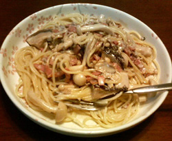 今日の晩御飯『キノコのクリームパスタ』