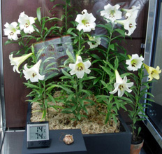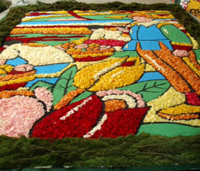 などが展示してあるとこを通る。青バラまだかよ(゚Д゚)と思いつつもこの花びらの絵にはびっくりしました。500本か500万本かのバラの花びらを使っているらしい。すごい。その近くには世界の花のお祭りの写真がありました。もう華やかで華やかで行ってみたくなりましたよー。オランダとかすごい綺麗でした。更に熱帯地方の植物コーナーへ。ここでランを見たりフトモモ科ユーカリフトモモという植物を見て大爆笑したりしました。いや、ホントユーカリフトモモとか目を疑いましたよ!思わずその看板を写真で撮ってきたくらい。しばらく二人で大爆笑してました。次は青いバラの次にアイランド花どんたくでの見所、ハカタユリの展示コーナー。