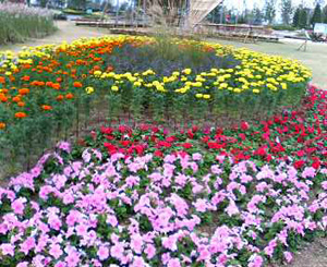 もうすぐこんな景色(゚∀゚)花畑だらけ。今月はペチュニアを主に植えているらしくてペチュニアの花畑がたくさんありました。ペチュニアもあれだけ集めて植えると圧巻でした。綺麗だったなぁ。うちもペチュニア買ってきて植えようかしら。とりあえずは景色を楽しみつつお目当ての青バラ展示のところへ。青バラ展示のところまでガレの作品展示(あんまりこゆのに興味はなかったんですがさすがって感じでした。美しかった〜蜻蛉のとかすごかったです)やらバラの花びらで作った絵