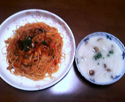 『きのこのトマトソーススパゲティときのこのミルクスープ』