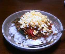 これは旦那のお気に入り。つか私もお気に入り。トマトとオクラをいれるのがポイントです。後ゆでたまご!(またかyp)やっぱカレーにはゆでたまご!でもアーモンドのせてもオイスィらしい。私はドライカレーは白ご飯ですがバターライスとかでも美味しいらしいですね。一回それもやってみよう。暑くてなかなか食欲なくなりがちですが、カレーとかやっぱスパイス系は夏でも美味しいね。それと私はゴーヤが大嫌いだったのですが、実家でゴーヤちゃんぷるーを食わされてちょっと食べれました。あれって苦味減りますね!でも自ら食べようとは思わないって感じでした。でも夏ばてしてた時にはいい感じでした。いつかはゴーヤ大好き!になる時は来るのだろうか・・・どうなんだろう