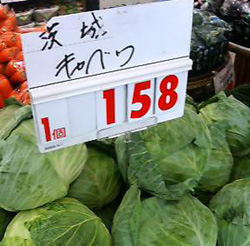 キャベワーーーー?(゚д゚ )!!!!!今日スーパーにお買い物に行ったら見つけてしまいましたよ…ちなみにこれも旦那が発見。これ見た時は衝撃でした。キャベツじゃなくてキャベワ…(゚∇゚)しかもニュースじゃ今キャベツが溢れて価格下がりまくって一玉20円とかって言ってたのにここじゃ158円(゚∀。)アヒャー。しかしこの写真撮る時に一応怪しまれないように撮ったつもりだったんですけどきっと怪しかっただろうな…。