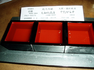 旦那が頼んだ奈良の日本酒の利き酒セット。