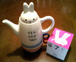 うさぎさんのティーポットとねこの日めくりカレンダー(/ω\)