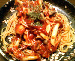 『ミックスきのこのトマトソーススパゲティ』