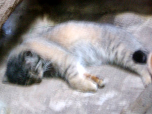 マヌルネコ、丁度子猫がいましてですね!もうそりゃもうたまらんというか鼻血ものな勢いで可愛くて写真ガッツリ撮ったつもりだったんですが結構動き回っていたのでブレブレだったりこれ何?状態でこの写真が唯一マシに撮れてるものでしたorzたぶんマヌルネコのところで20分はいたと思う!旦那にそろそろどいたがいいって…とか言われたので…(;'∇')そんぐらいマヌルネコはやっぱ可愛かったですよ、フサフサもふもふしてて。もう大満足で後適当にオカピとか見て