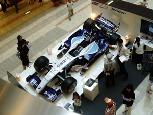 ウマァー(*´д`*)なんか旦那の頼んだコールドチョコレートが絶品!甘さ控え目でカカオのほろ苦い感じがたまりませんでした。私の方も美味しかったんですが生クリームたっぷりで腹にたまる感じで量が少し多いような気がしました…いや、前日の体調不良をまだ少しひきずってたのでそのせいかもしれませんが。ここでお土産チョコを買いたいところだったのですが、解けたら最悪だし今から飛行機乗るしで断念(´・ω・`)チョコ買って食べて見たかったなぁ…。旦那はそこのショップのお姉さんが超美人だったのでそっちにヒャッホイしてましたが。「こんな美人はなかなか見れねぇ!!」とのことで大興奮してました。私もおぉっと思うくらいの美人さんだったので興味がある方は行ってみてください(笑)んで時間が中途半端だったのでもう早めに空港行っておくかーということになって空港へ。これがもう大正解でした。今回は安いのでスカイマークに乗ったんですがさすが安いだけあってもう大混雑で、手続きが長蛇の列…荷物預けも長蛇の列…もうかなりここで時間を食ってしまいましたが、お昼ご飯をまだ食べてなかったので蕎麦屋さんへ。蕎麦屋に行く途中でF1カーを展示してあったので写真パシャパシャ。