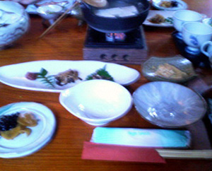 ピンぼけ気味ですが夕飯のお品書きはこんな感じで…