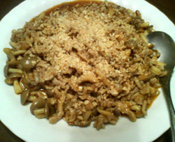 上にかかってるのはピーナッツを刻んだやつなんですが