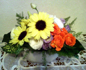 ひまわり、トルコキキョウ、バラ、レモンリーフ等