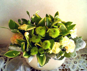 今回は緑〜黄色のグラデーションって感じで生けてみました。
